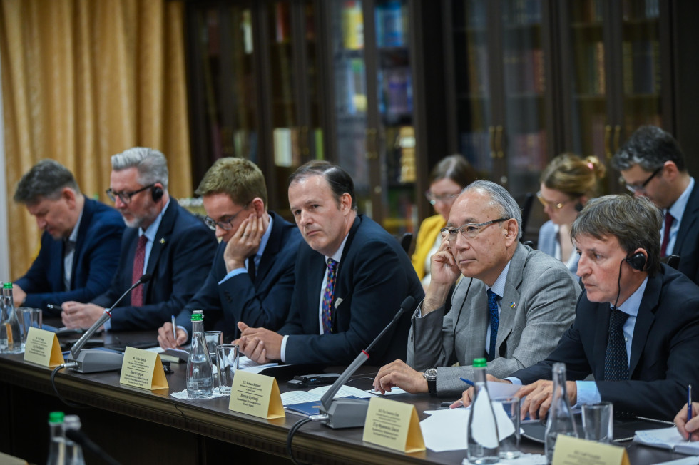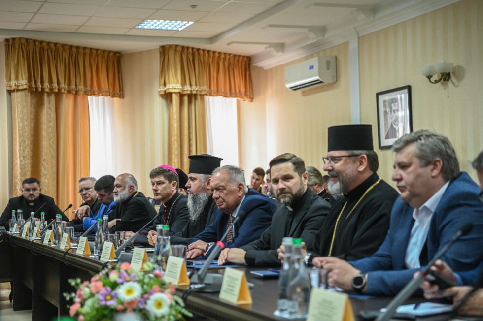 The meeting of the UCCRO with the G7 Ambassadors was attended by Ambassador Extraordinary and Plenipotentiary of Italy Pier Francesco Zazzo, Ambassador Extraordinary and Plenipotentiary of Japan Matsuda Kuninori, Ambassador Extraordinary and Plenipotentiary of France Gael Veyer and Chargés d'Affaires of the United States, Great Britain, Germany, Canada, and the European Union. The UCCRO was represented by the Chairman of the UCCRO, President of the UBS Hryhorii Komendant, Metropolitan Epifaniy of Kyiv and All Ukraine of the OCU, Head of the UGCC Sviatoslav Shevchuk, and Bishop Vitaliy Kryvytskyi of the RCC, Senior Bishop Anatoliy Kozachok of the Ukrainian Christian Evangelical Church, the Grand Mufti of Ukraine Ahmed Tamim, Bishop Stanislav Nosov of the Seventh-day Adventist Churches of Ukraine, Senior Bishop Leonid Padun of the Ukrainian Christian Evangelical Church, Bishop Marcos Hovhannisyan of the UD AAC and other representatives of churches and religious organizations.
