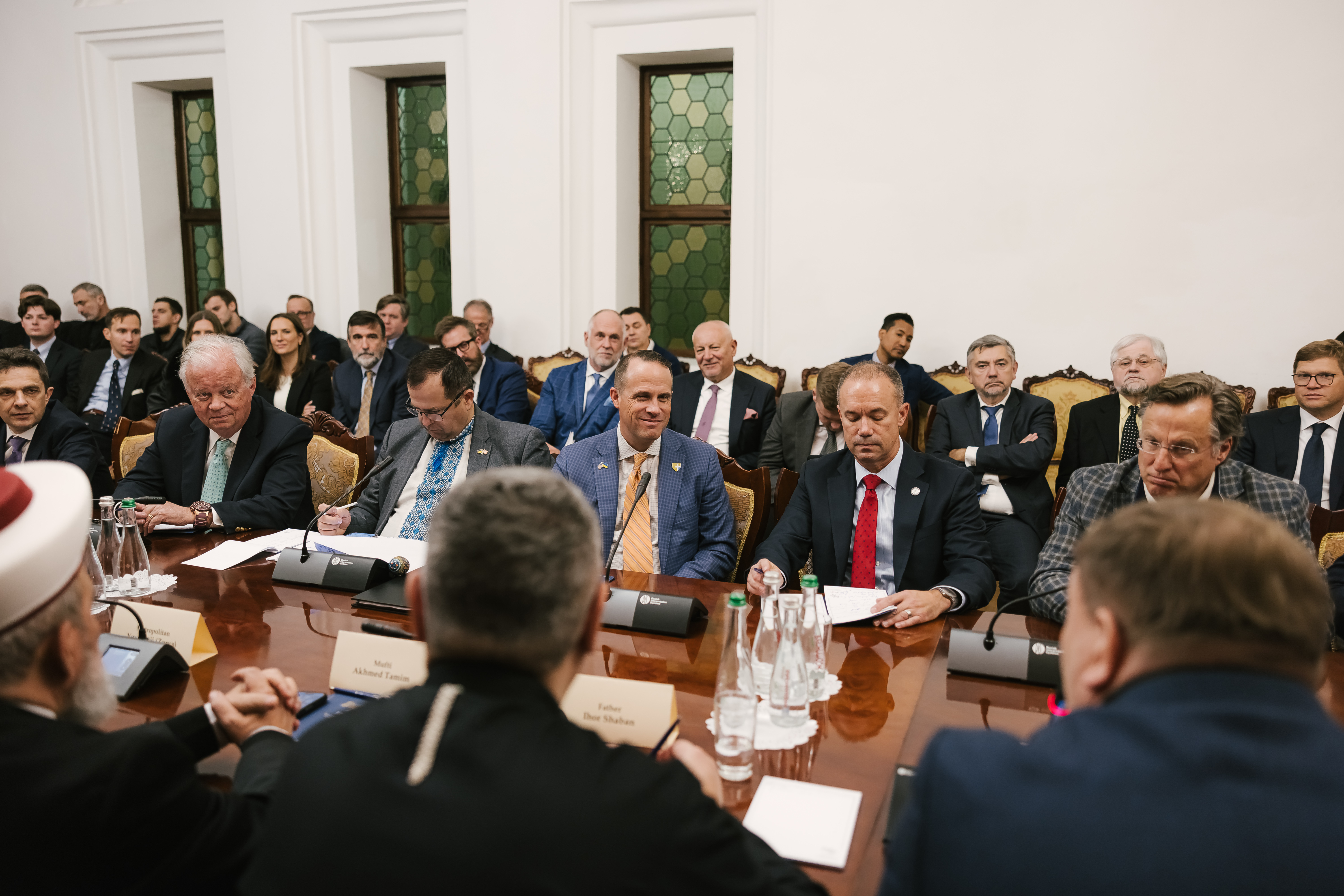 The Ukrainian Council of Churches and Religious Organizations' meeting with the American delegation was attended by Olena Kovalska, Deputy Head of the Office of the President of Ukraine, and Viktor Voynalovych, First Deputy Head of the State Service for Ethnic Policy and Freedom of Conscience.