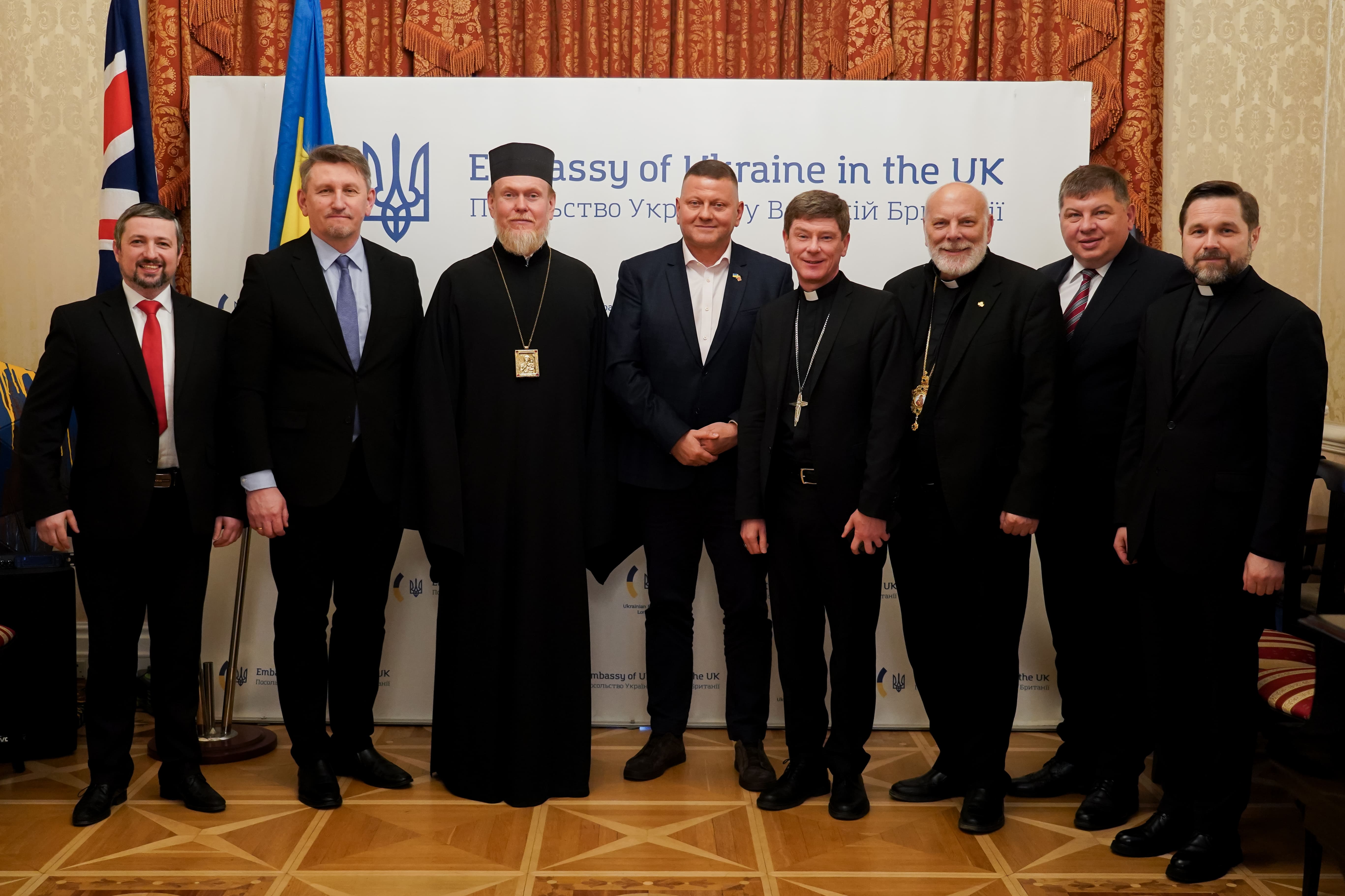 On the same day, the UCCRO delegation visited the Embassy of Ukraine and met with Valerii Zaluzhnyi, Ambassador Extraordinary and Plenipotentiary of Ukraine to the United Kingdom of Great Britain and Northern Ireland. During the meeting, representatives of the Council of Churches briefed the Ambassador on their meetings with British partners and discussed further efforts to serve and support Ukrainians in the United Kingdom.